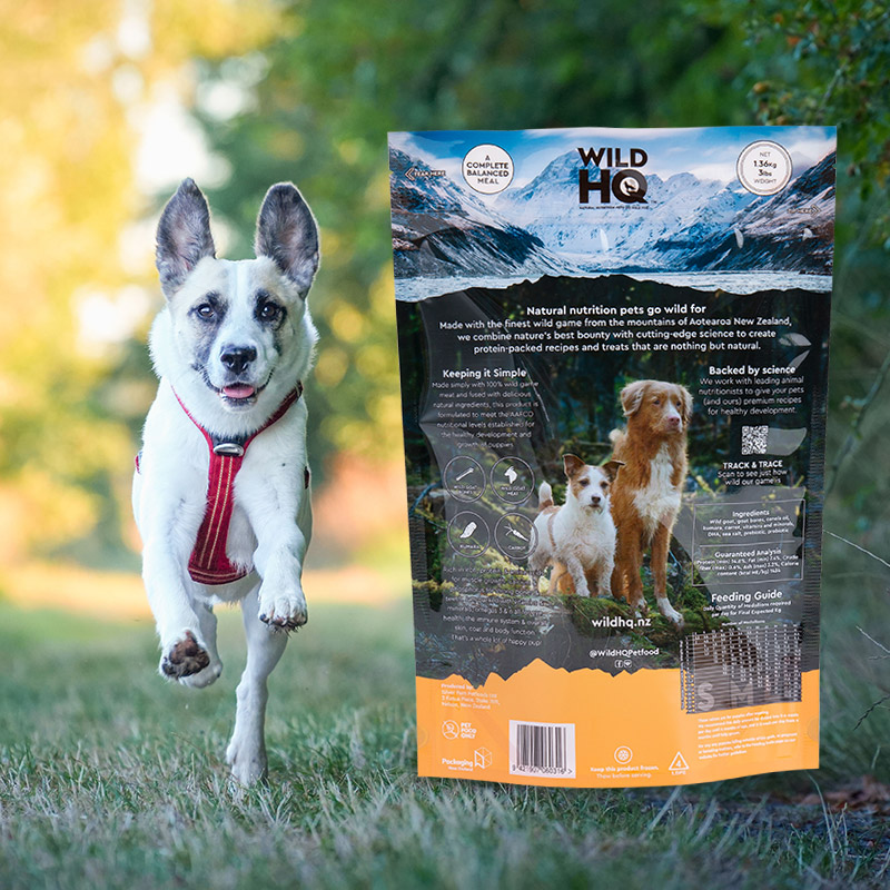 Multe mărci de hrană pentru animale de companie folosesc pungi imprimate complet personalizate pentru a spori identitatea mărcii și impactul pe raft. Tehnologiile avansate de imprimare permit grafică vibrantă, de înaltă rezoluție, etichetare clară și finisaje unice, cum ar fi mată sau lucioasă.